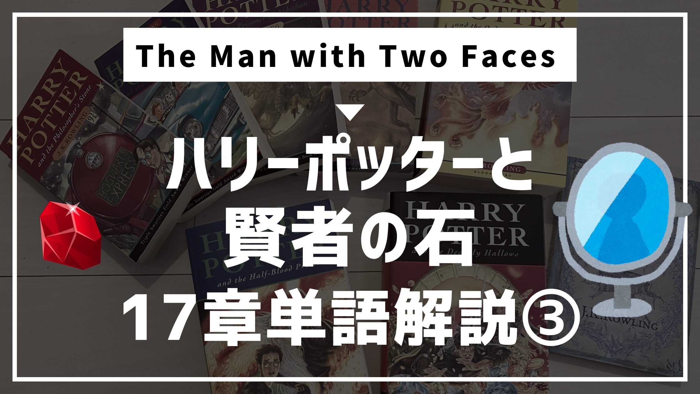 今回は、Harry Potter and the Philosopher’s Stone (ハリー・ポッターと賢者の石)の1巻17章「The Man with Two Faces(二つの顔を持つ男)に出てくる重要な名詞について解説します 💎🪞