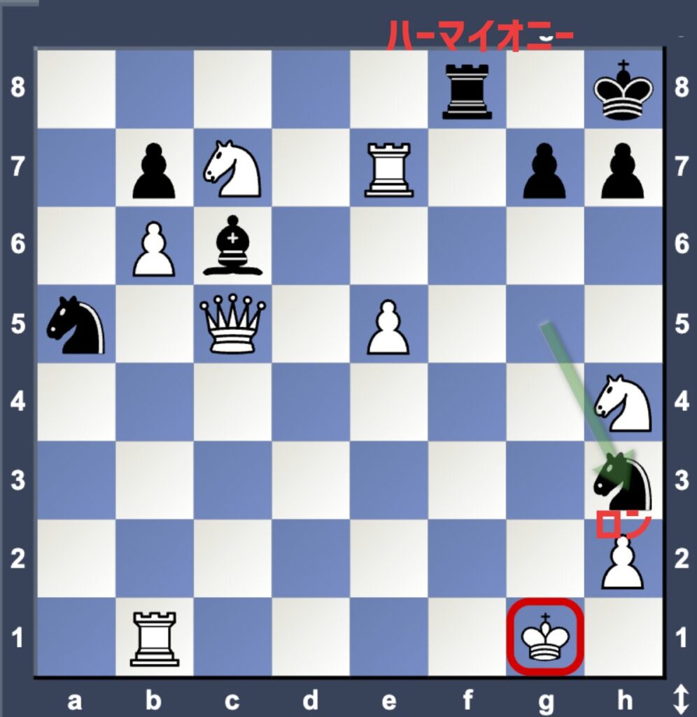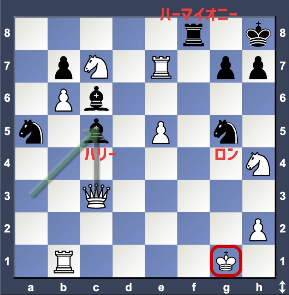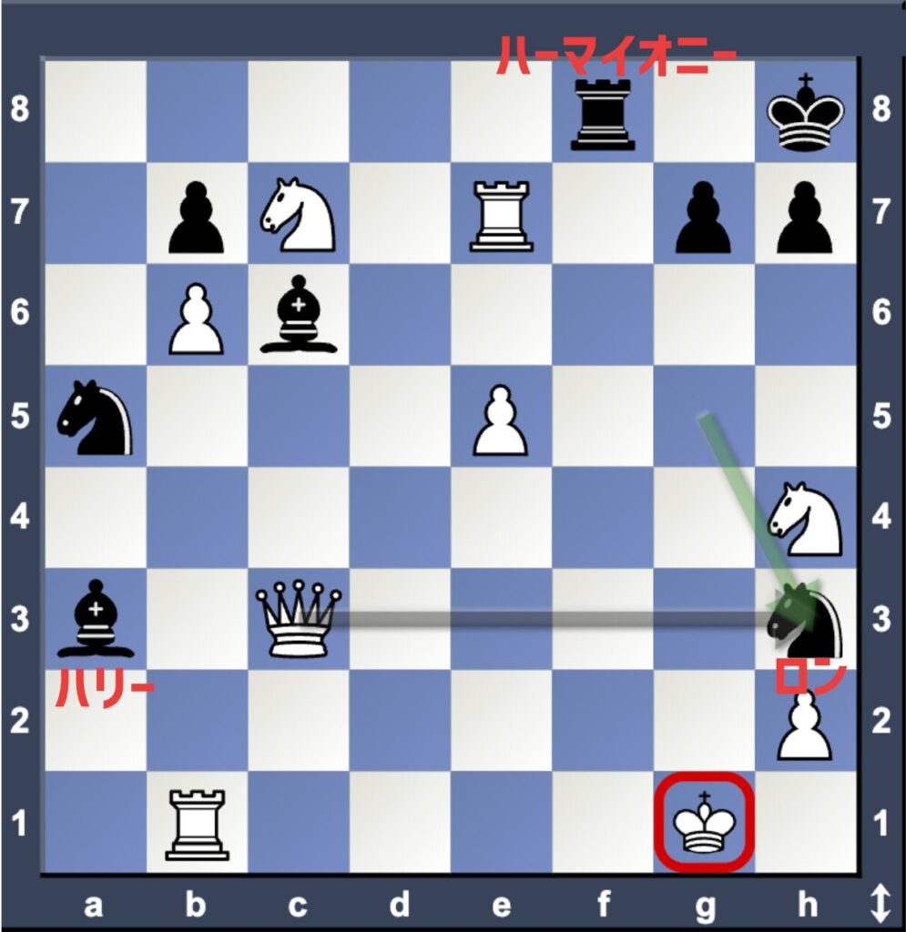 ☝️ハリーを囮にして、ロンがH3に移動してチェックメイト!